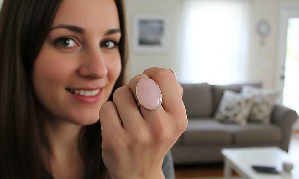 Inel argint reglabil masiv cu cuart roz 25x18 MM